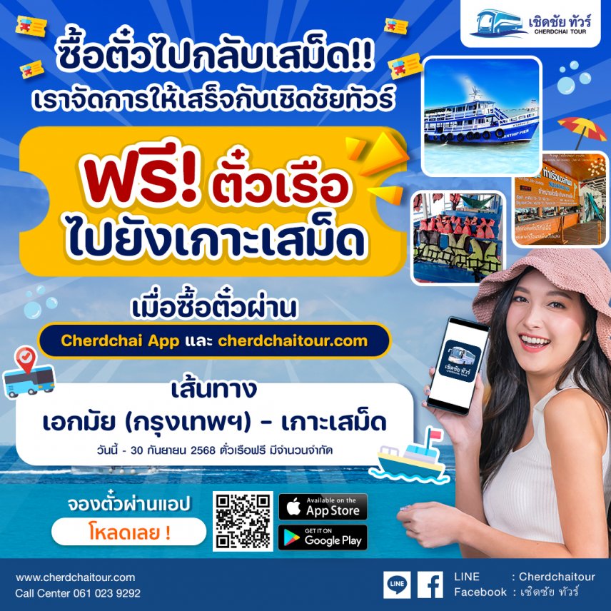 เมื่อซื้อตั๋วผ่าน Cherdchai App และ cherdchaitour.com วันนี้ - 30 กันยายน 2568
