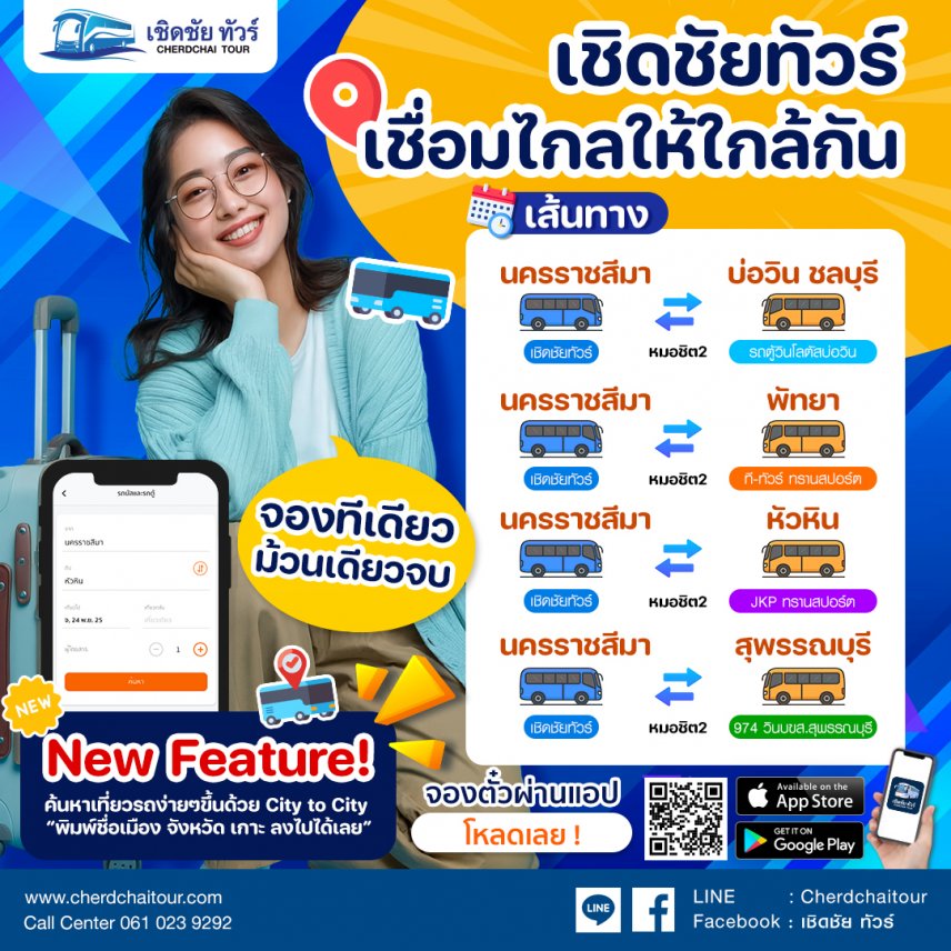 เดินทางจากโคราช ไปยังเชื่อมต่อยังหลายปลายทาง ด้วยการจองตั๋วเพียงครั้งเดียว